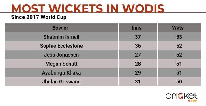 While the left-arm spinner is second on the list of leading wicket-takers since the last World Cup with 52 scalps in 36 innings, her recent outings will be an area of concern for the team management of the England side.