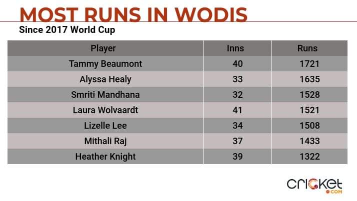 One of the primary reasons for their blazing start in the field restriction is the consistent performance of Beaumont along with Knight.The opening batter is the leading run-scorer across the world since the last extravaganza with 1721 runs in 40 innings, followed by the skipper in seventh place with 1332 runs in 39 innings.