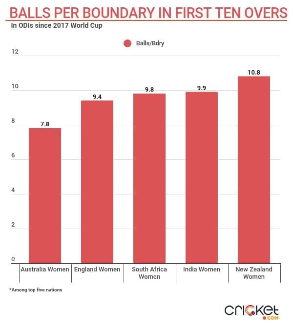 In the 39 innings played thus far since the 2017 World Cup, England have scored 1787 runs, with a boundary every 9.4 deliveries in the powerplay, which is the second-best among the top-five nations.