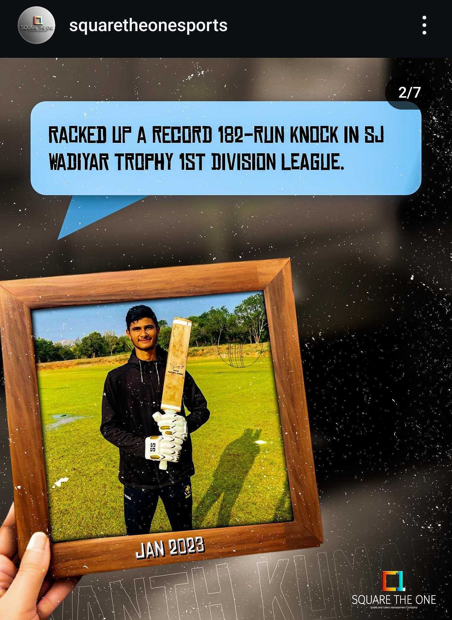 Ironically, Manvanth himself recalls little from that day other than the sheer joy of hitting those 16 sixes. The details of his feat are tucked away on his Instagram profile: a stunning 182 in the SJ Wadiyar Trophy during the 1st Division League in Mysore.