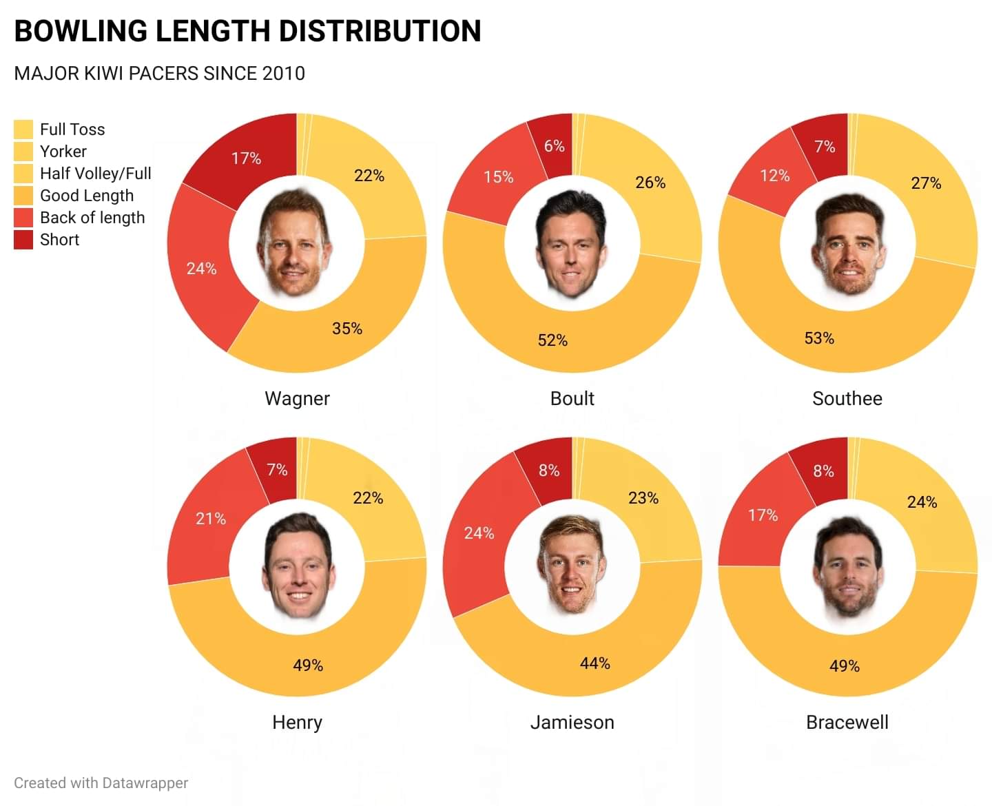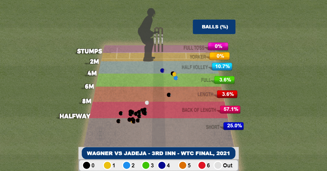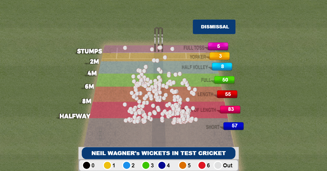 Wagner worked as the fourth seamer due to the variety he provided. Although he mostly hit the good length like any other Test seamer, the left-armer hit the back-of-a-length and the short-pitched area more than his pace-bowling comrades.