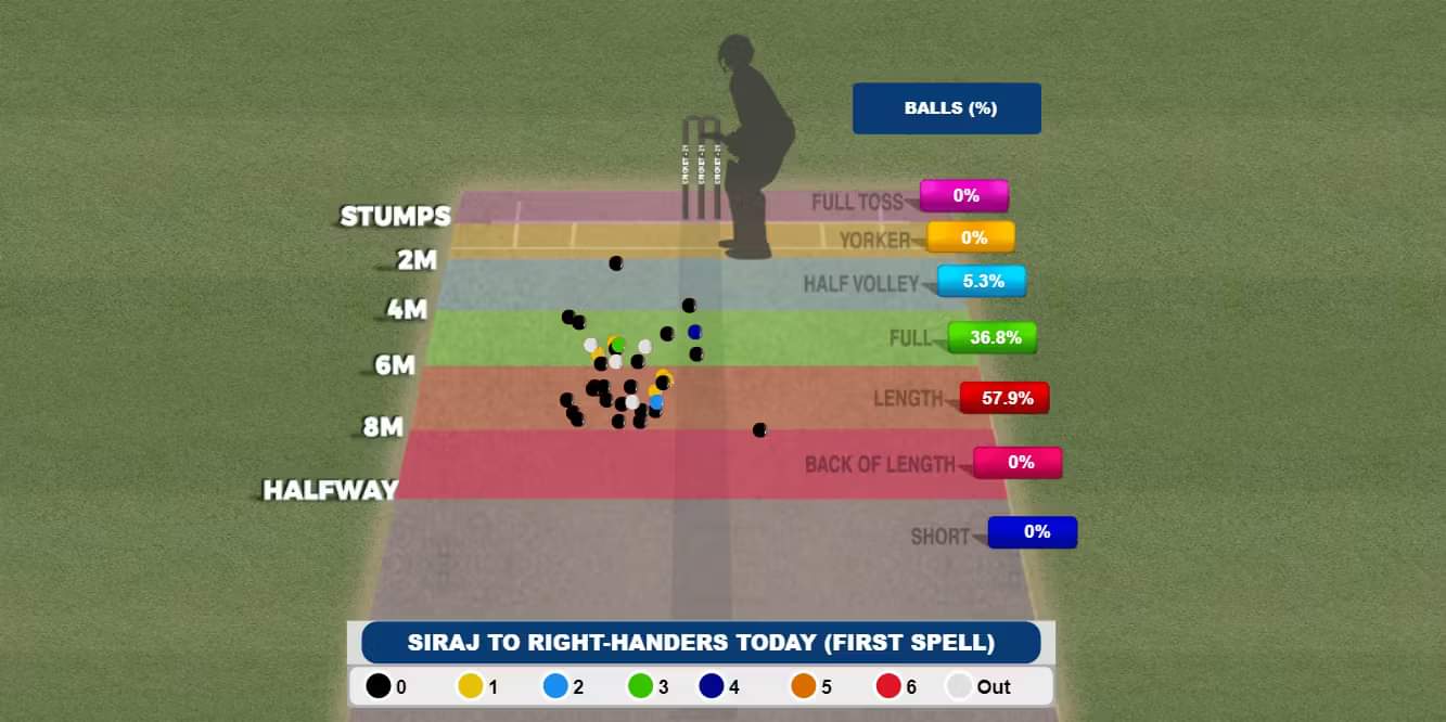 Interestingly, the Indian pacers, including Siraj, had a specific set of plans for left-handers and right-handers on the day. While the plan was to bowl leg-side to the two left-handed openers, it was evidently clear that they were targetting the outside off-stump channel for the right-handers that followed.