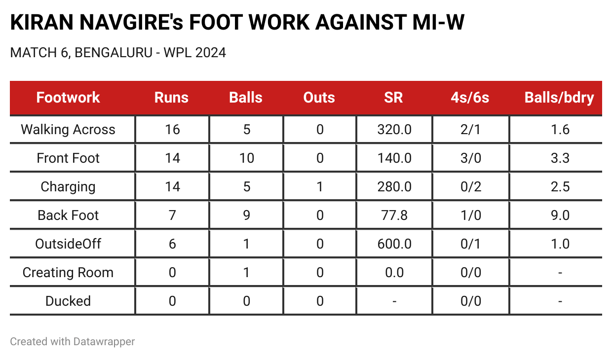 It was visible when she accessed all parts of the ground in her knock. Slog-sweep, hitting down the ground, pull-shot, you could see all of that today in Navgire’s storm here at the Chinnaswamy Stadium.