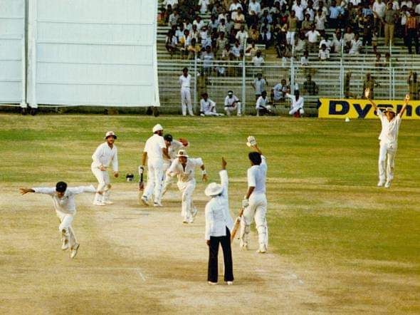 While Kalicharan had made 98 in the first innings, Larry Gomes’ 91 took them to 151, setting India a target of 125 runs to win. The Indian team received early blows and were 17/3 before Anshuman Gaekwad and Viswanath added an important 57 for the fourth wicket. With both of them and Bobjee Narsimha Rao falling in the space of 10 runs, India found themselves in trouble again.