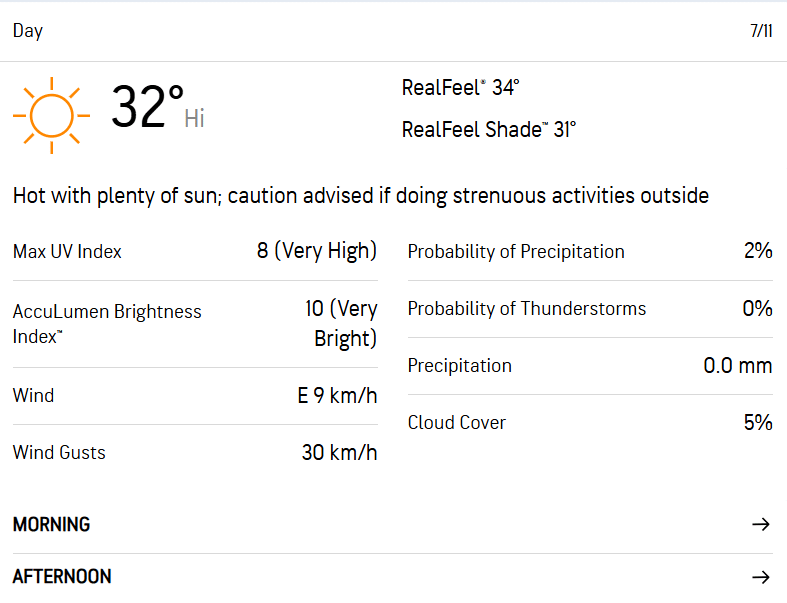 There’s just 2% of precipitation, which in all likelihood won’t stop the match for a significant period of time, with 5% cloud cover.
