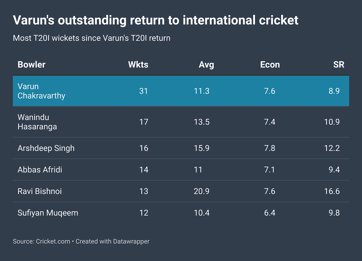 There aren’t too many sweet comebacks in Indian cricket like Varun Chakaravarthy. Until a few months ago, he wasn’t even close to the Indian setup, but what he has done across all formats of cricket is impress the selectors.