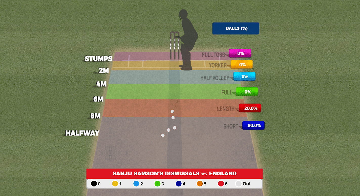 Samson has had a forgettable series, with four out of the five dismissals being short balls and one being on the back-of-a-length region. The 30-year-old could only score 51 runs in the entire series, averaging 10.2, putting his place in ‘deep jeopardy’.