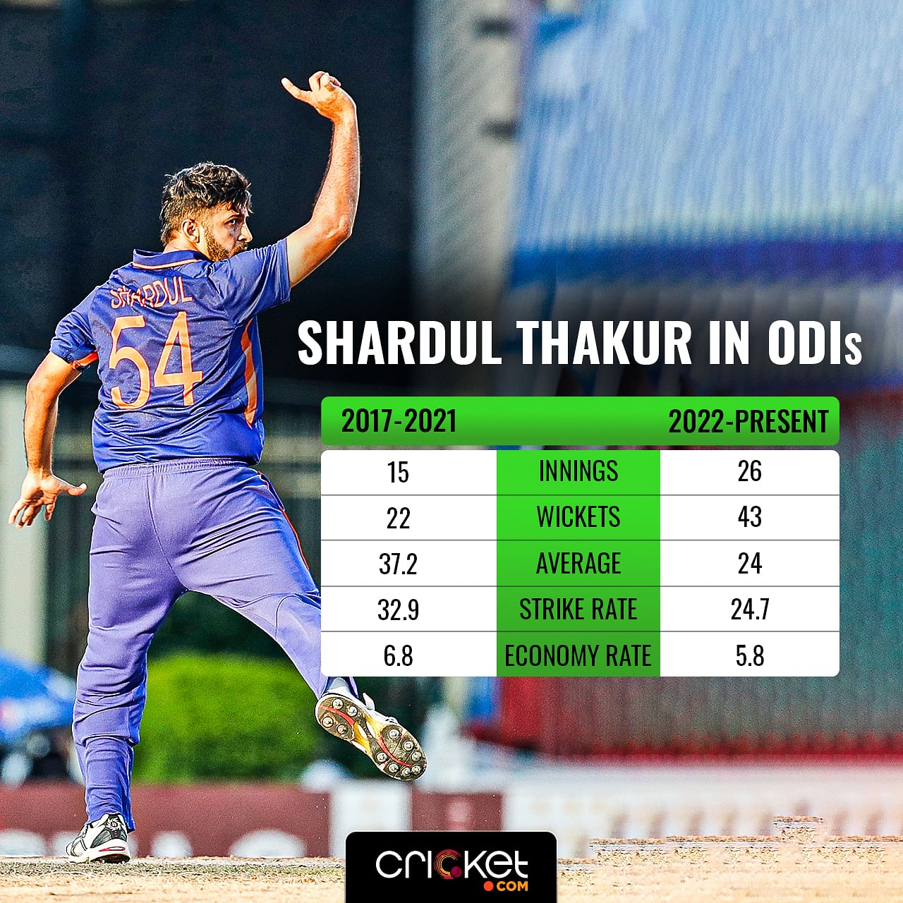 Let’s keep his batting aside for a while, Shardul has also improved as a bowler in the last two years. Since 2022, the right-arm seamer has claimed 36 wickets in 23 games @ 24.3 and a strike rate of 25.6. His economy has also dropped to 5.7, compared to 6.8 in his first five years. The Indian team management has been pretty vocal about wanting some batting depth, and that's why Shardul has played the joint second-most number of ODIs (23) for India since 2022.