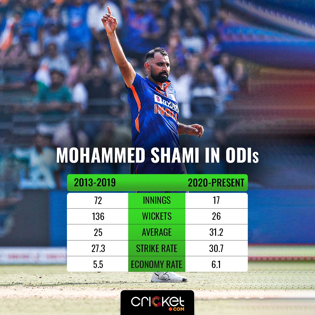 Amongst pacers who have taken at least 150 wickets in ODIs, Shami (27.8) has the second-best strike rate after Starc (25.9). Yes, that’s right, Shami is a pure wicket-taker, but also has the second-worst economy rate (5.6) amongst all. What’s more, the right-arm pacer is averaging 31.2 at a strike rate of 30.7 and has an economy of 6.1 since 2020.