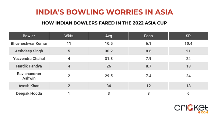 Hardik Pandya as a third pacer was a big struggle. Barring the short-ball barrage-a-thon against Pakistan, Pandya suffered being the third seamer, with figures of 1/79 in eight overs. Arshdeep Singh and Avesh Khan – were tried out during the event but were they really convincing?