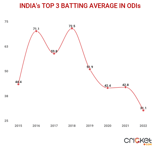The swinging ball will be a litmus Test for batters from both sides. For India, the concern lies around diminishing returns from the top-order. In eight ODIs this year, India’s top-three have averaged 31.1 runs per wicket.
