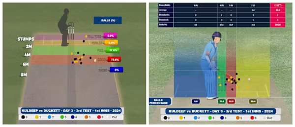 Having bowled a tad too straight on Day 2, Kuldeep course corrected and took the sweep away from Duckett on Day 3.