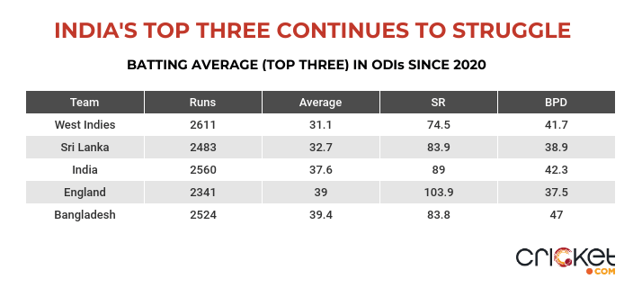Virat Kohli’s struggle has been well-documented. Throwing light on that will be as inconsequential, given how the whole country is talking about it. While Kohli averages 45.6 chasing totals, his inability to convert the start into a three-figure score has often been a worrying sign for India. Now combine that struggle with Shikhar Dhawan’s. Dhawan’s last ODI century was in June 2019, and while since then, the left-hander has scores of 98 and 86*, a big score has been missing.