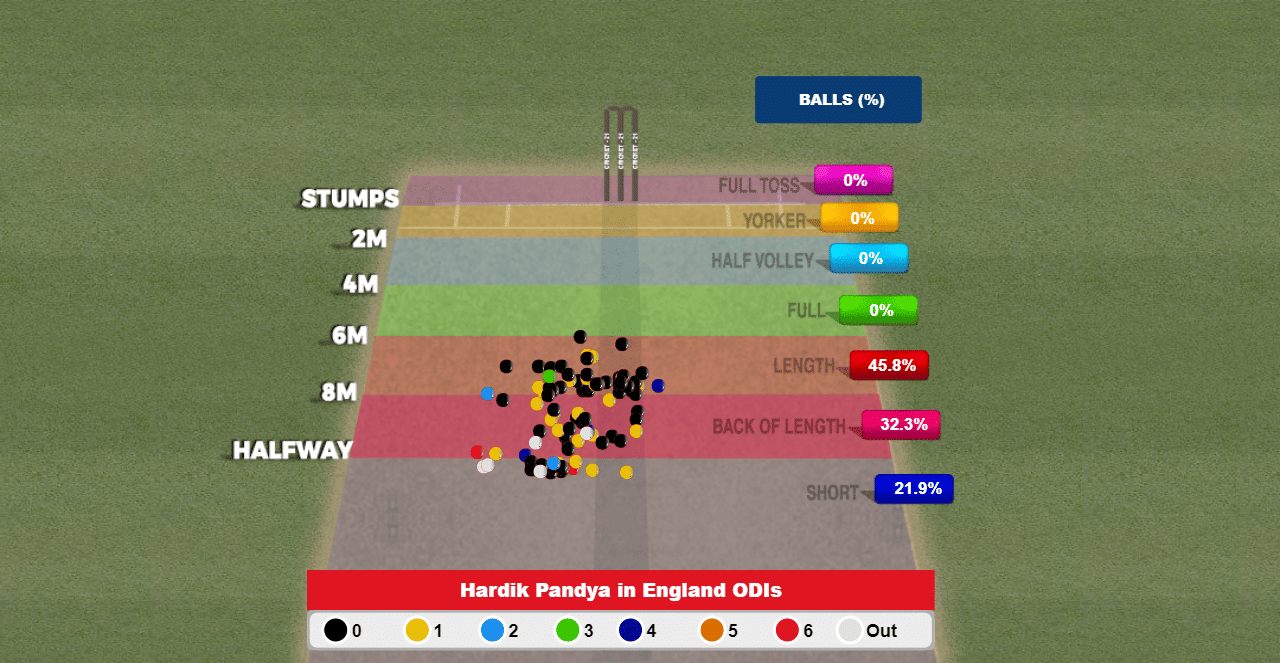 Even in the T20I series, it was a recurrent theme of how Hardik was using the bounce on the surface to its fullest use. That theme extended to the ODI series, where he was consistently using the bouncer as a lethal weapon. All four of his wickets in the final ODI came via deliveries that were pitched the furthest away from the batters.