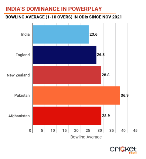 That was perhaps a key area that needed immediate change for India’s fortunes. Since November 2021, India have the best average with the new ball, at 23.6, picking up 18 wickets, the most for any sides in the time period. To add to that, the Indian bowlers also have the best strike-rate in the powerplay, at 30.
