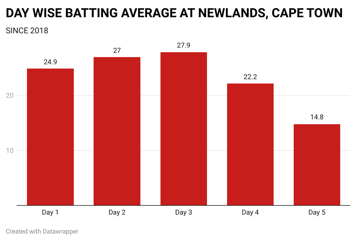 KL Rahul, during the Centurion Test, mentioned that the pitch becomes better to bat on Day 2 and Day 3. Cape Town is not much different if you consider the last five Tests played at the venue.