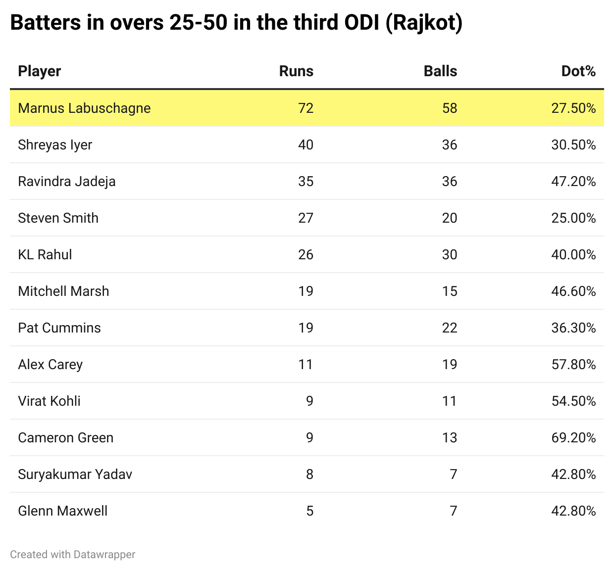 Carey is averaging 23.12 this year and has only one 20+ score apart from the 99 he scored in Centurion. Couple this with Maxwell’s lack of game time and uncertainty over Green/Stoinis, it’d almost be a blunder to now leave out Labuschagne, who is currently the only in-form middle-order batter for the Aussies.