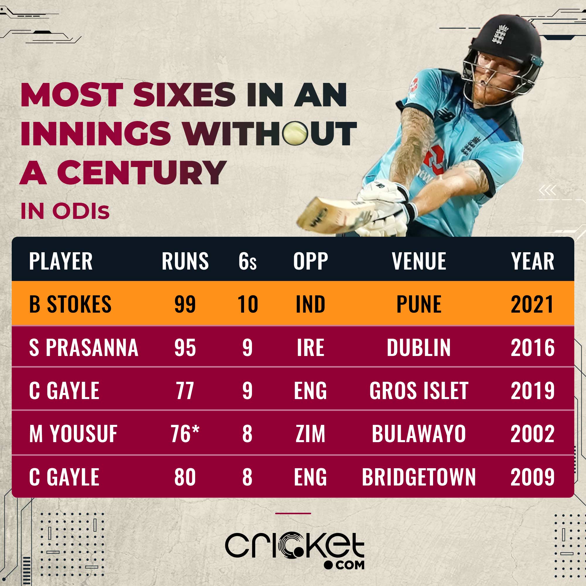 Stokes then struck Krunal for three maximums in the next over and moved into the 90s in a matter of just two overs. The game was almost dead by then as the two England batsmen took the Indian bowlers to the cleaners. Stokes was racing towards his century but the left-hander fell one run short of what could have been the third-fastest century for England. Stokes slammed 10 sixes before falling to Bhuvneshwar in the 36th over. The game looked dead but that's when Krishna came back into the attack and dismissed Bairstow and Buttler (0) in the same over to bring India right back in the game.