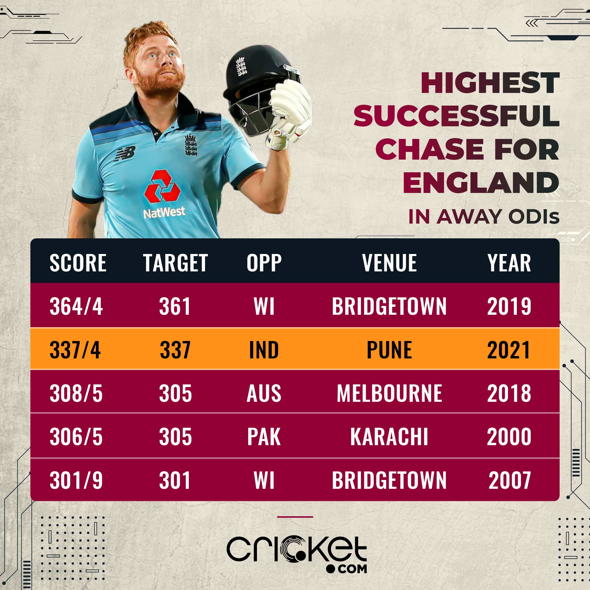 Those were Eoin Morgan's words after England messed up a simple chase in the first One-Day International against India. Morgan (injured) wasn't there to lead England in the second ODI but his team followed the same template and made an absolute mockery of India's 338-run target at the Maharashtra Cricket Association Stadium, Pune on Friday (March 26). Jonny Bairstow (112-ball 124) and Ben Stokes (52-ball 99) smoked India all around the park as England clobbered 20 sixes in their innings, and earned a six-wicket series-levelling victory.