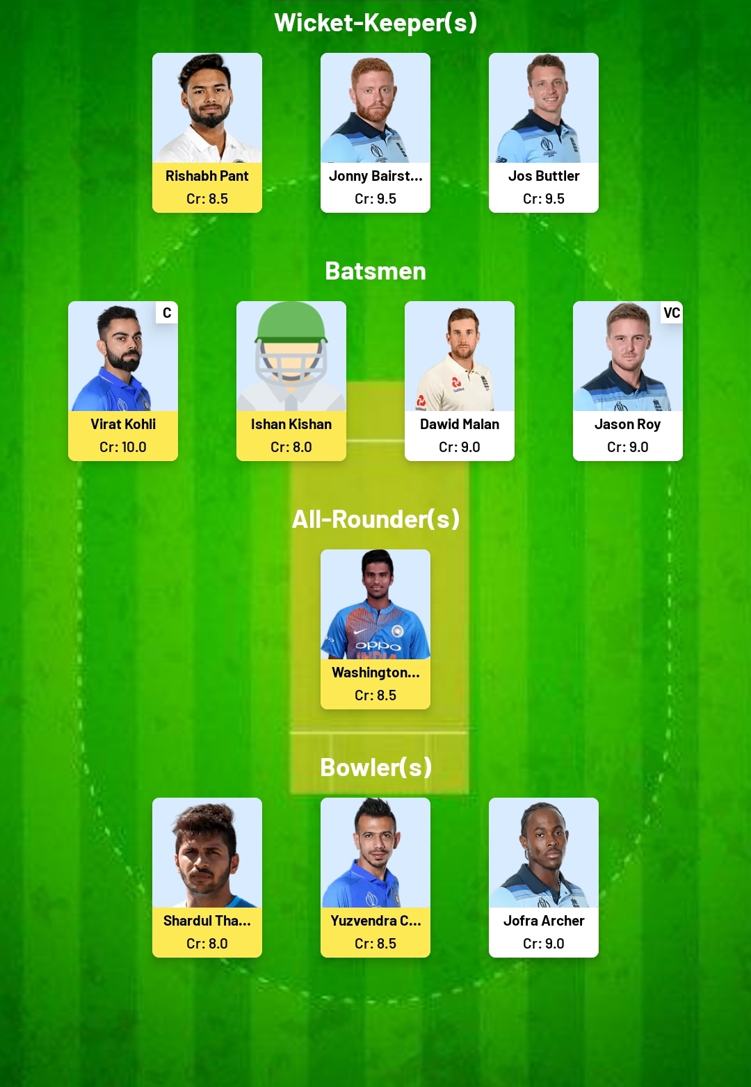 England captain Eoin Morgan described the surface used for the second T20I as "quite slow, low, didn't turn a great deal" and you can expect similar conditions in the third encounter. Stroke-making wasn't easy and batsmen were forced to earn their runs. Jason Roy has been in pretty good form, while KL Rahul has struggled to get going. It would be ideal to have a couple of batsmen who are more "conventional". The likes of Virat Kohli and Dawid Malan are safe options, but you could also gamble with batsmen like Ishan Kishan and Jos Buttler.