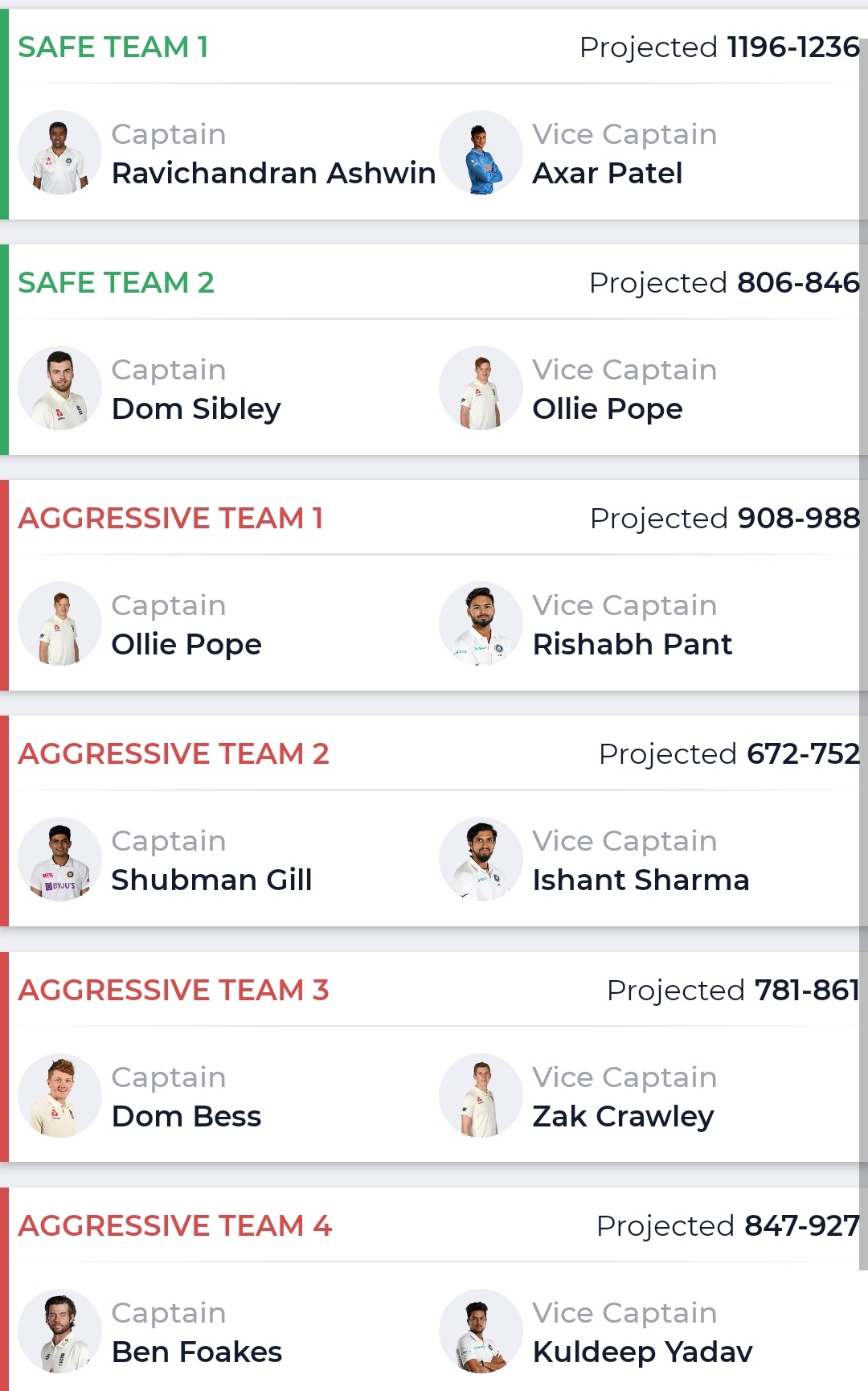 While you could go for the above team, you also have the option of choosing your own team from Cricket.com’s Fantasy Research Centre. Based on algorithms we come up with six different teams that could fetch crucial points.