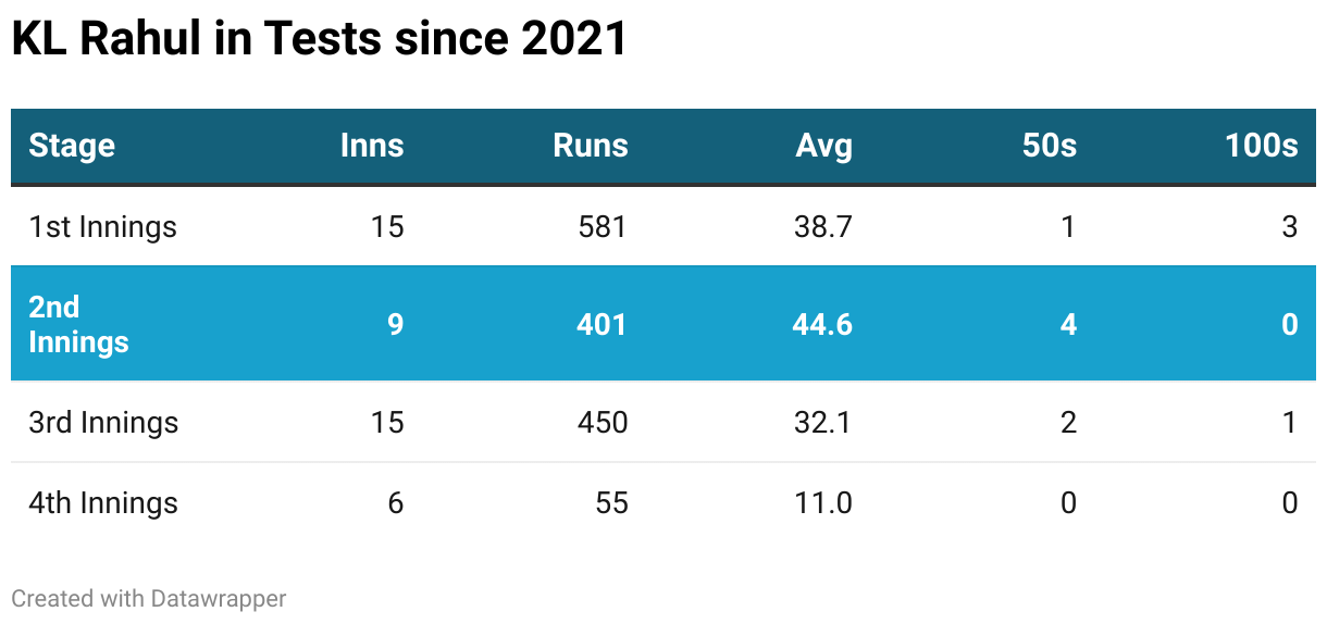 KL Rahul will be a key factor in Team India's counter for England as he has done well in the second innings of Tests since 2021. He has scored 401 runs at a terrific average of 44.6, which is his best across the four innings of a Test. He has gone past fifty four times in nine innings and is yet to reach three figures. With him scoring a century in the 2021 Lord's Test, expect KL Rahul to score big on Day 2.