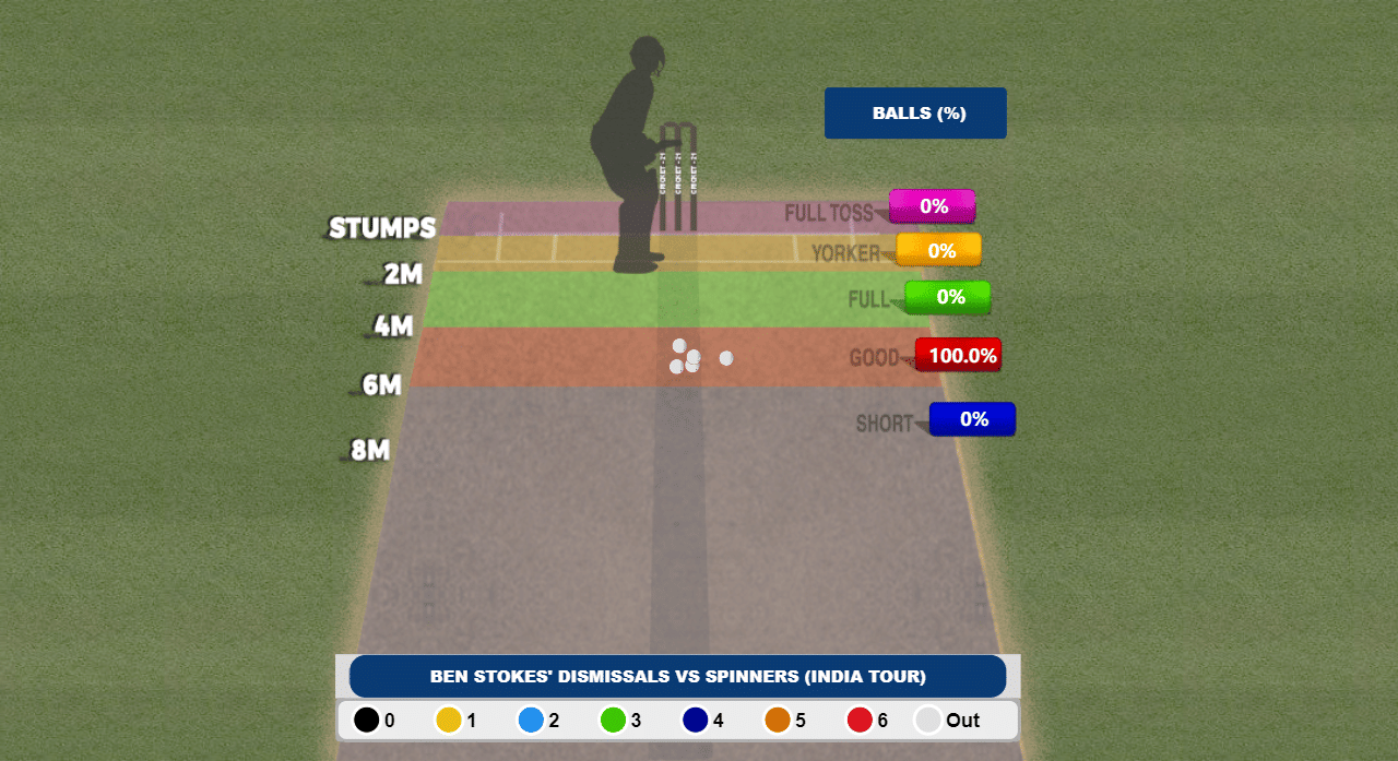 Stokes has been highly unlucky on a couple of occasions where the ball has scooted low past his bat. On some occasions, he has been undone by Jasprit Bumrah’s magic. India have peppered Stokes with a lot of spin in the series, resulting in five of his seven dismissals. There’s also a pattern, with four dismissals either bowled/lbw.