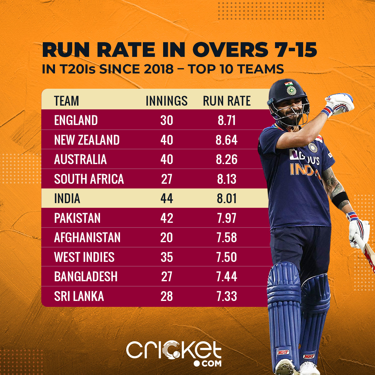 India need an enforcer at number four. Since 2018, India’s run-rate in overs 7-15 has been a notch lower than other sides eyeing the coveted trophy later this year.