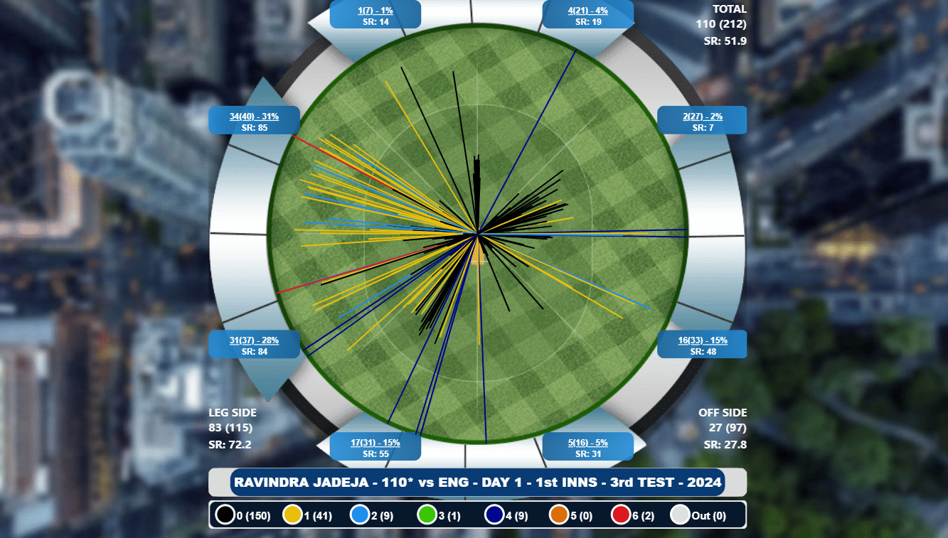 Jadeja never looked in hurry, taking his ample time to keep the scoreboard moving. He was particularly aggressive against Wood and Root, scoring 38 off 47 and 33 and 45 against them respectively. When Rohit got out, Jadeja slowed down further and allowed the debutant Sarfaraz Khan to do all the scoring. He put on 77 runs with Sarfaraz but scored only 14 runs in the partnership.