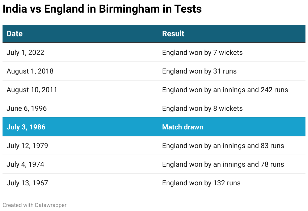 India have a terrible record in Birmingham as they have lost seven of the eight Tests at this venue. Since 2000, India have lost in every way as they have lost by an innings, failed to chase and defend a target as well.