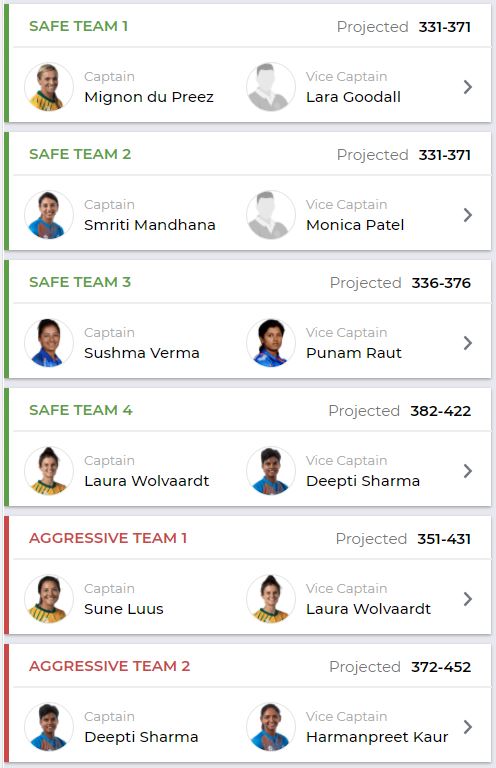 While you could go for the above team, you also have the option of choosing your own team from Cricket.com’s Fantasy Research Centre. Based on algorithms we come up with six different teams that could fetch crucial points.
