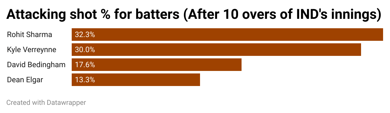 Rohit set the tone for India post-lunch. Knowing the best way to score runs was by fighting fire with fire, he walked out with a 'see ball, hit ball' mindset, dispatching anything remotely wide or full.