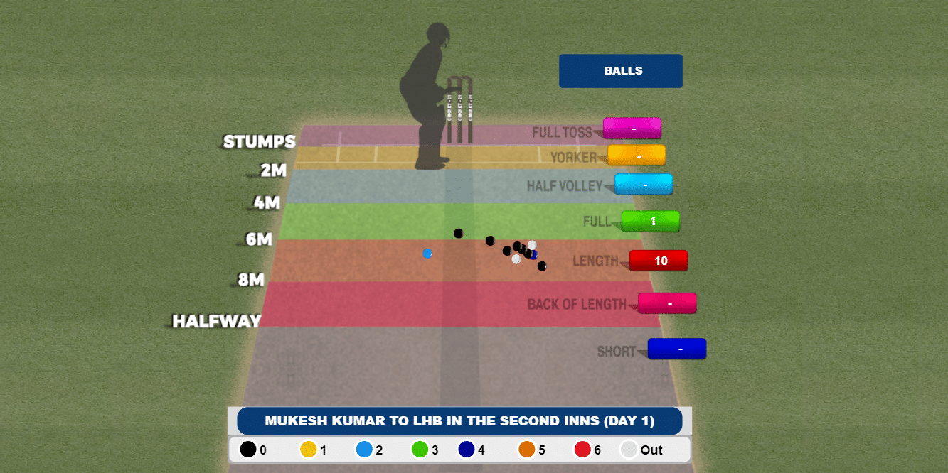 Bowling from 'round the wicket to the lefties, Mukesh tested them by relentlessly hitting that Mohammed Shami line & length that has often been the kryptonite for many batters.