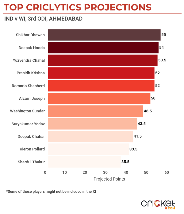 The highest wicket-taker in the series, Prasidh Krishna is averaging a stunning 6.83 with the ball, and single-handedly ripped through the entire Windies batting unit in the second ODI. The Windies batters found it impossible to handle his pace and bounce in each of the first two ODIs, and in the form Prasidh is in, it won’t be a surprise if the form continues in the final game of the series.
