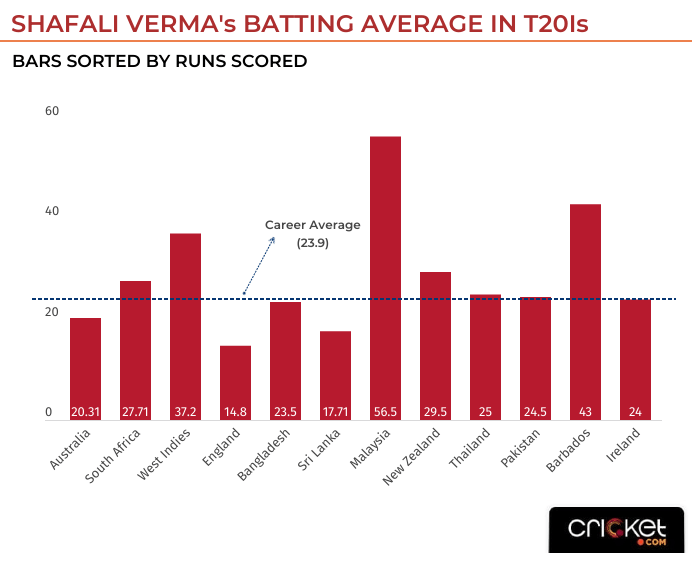 Shafali’s record against bigger teams, especially England and Australia, paints another worrisome picture.