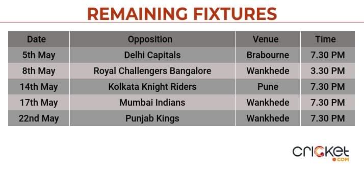 With 12 points in 10 games, the Royals will need to win two out of their remaining four matches to progress to the last four. The Royals will look to make amends for their below-par performance in the last two games and get back to winning ways against the Punjab Kings in their upcoming clash.