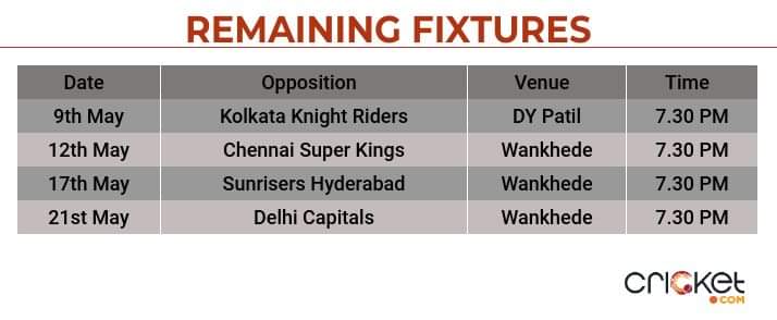 While the Mumbai outfit does not have a chance of making it to the final four, the Rohit Sharma-led side will look to win most of their remaining four matches to end the season on a high.
