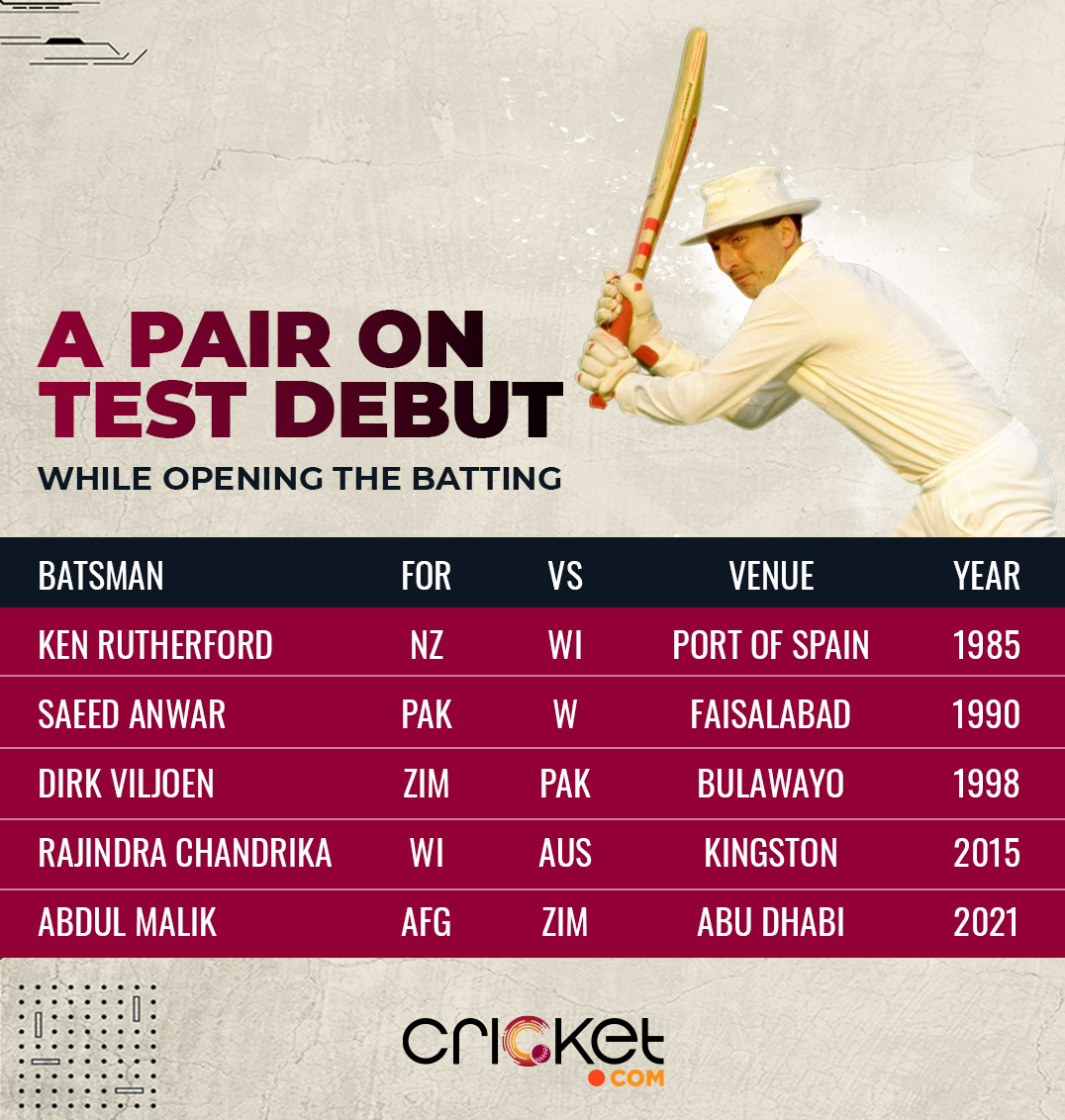 Abdul Malik in the Abu Dhabi Test match against Zimbabwe became the 45th player to achieve this dubious deed of bagging a pair on debut. He incidentally becomes the first Afghan player to do so. For the record, the first to bag a pair on Test debut was Englishman Fred Grace against Australia at the Oval in September 1880. Fred incidentally was the youngest of the three brothers who played in the match along with Edward and the more famous William (WG). Unfortunately, Fred Grace passed away two weeks after this Test match (on Sept 22, 1880), then aged 30. Apparently, his death was caused because of sleeping in a damp hotel bed! Some of the famous Test cricketers who had this misfortune of bagging a pair on debut, include England’s Graham Gooch, New Zealander Ken Rutherford, Pakistani Saeed Anwar and Sri Lankan Marvan Atapattu. And among the current players South African Dean Elgar has managed to do well in Test cricket later in his career. Abdul Malik, meanwhile, becomes the only fifth batsmen to be dismissed for a pair on debut while opening the batting in both innings. The list below has the details.