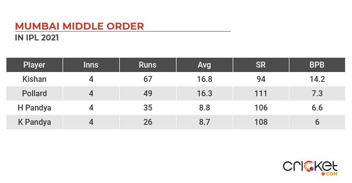 Mumbai’s middle-order has been a source of envy for other sides. In this season, playing in Chennai has been a nightmare for them. With only one half-century score in four games – Suryakumar Yadav against Kolkata – their batting has never looked this wobbly.