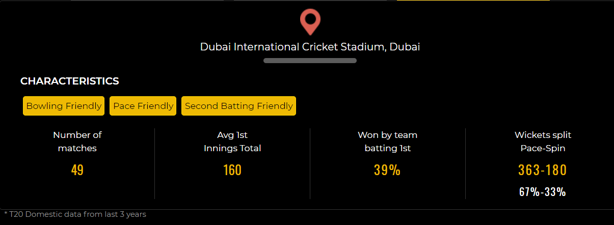 In the second leg of the Indian Premier, Dubai International Cricket Stadium (DSC) has been the only truly competitive. Unlike the pitches in Sharjah or Abu Dhabi, where conditions in the past have slowed down, aiding to the bowlers, the pitches in Dubai have offered steady batting conditions. Since 2018, the average score at the venue has been 158 in 86 games, with 44 games won by the team batting side.