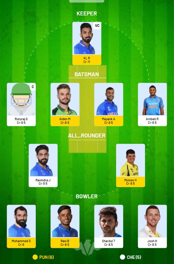 Punjab Kings: KL Rahul (c & wk), Mayank Agarwal, Aiden Markram, Nicholas Pooran, Deepak Hooda, Shahrukh Khan, Moises Henriques, Harpreet Brar, Mohammed Shami, Ravi Bishnoi, Arshdeep Singh