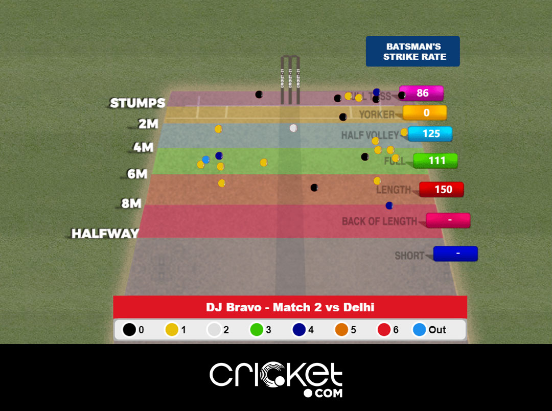 The lesson here is hidden in the lines and not the lengths. While the Aussie quicks tried the hard lengths bowled in the channel around off, Bravo chose to keep the ball wide, not allowing the batsmen to get a full swing of the bat. Bravo bowled as many wide full-tosses as the number of off-cutters (6) in their game against Delhi.