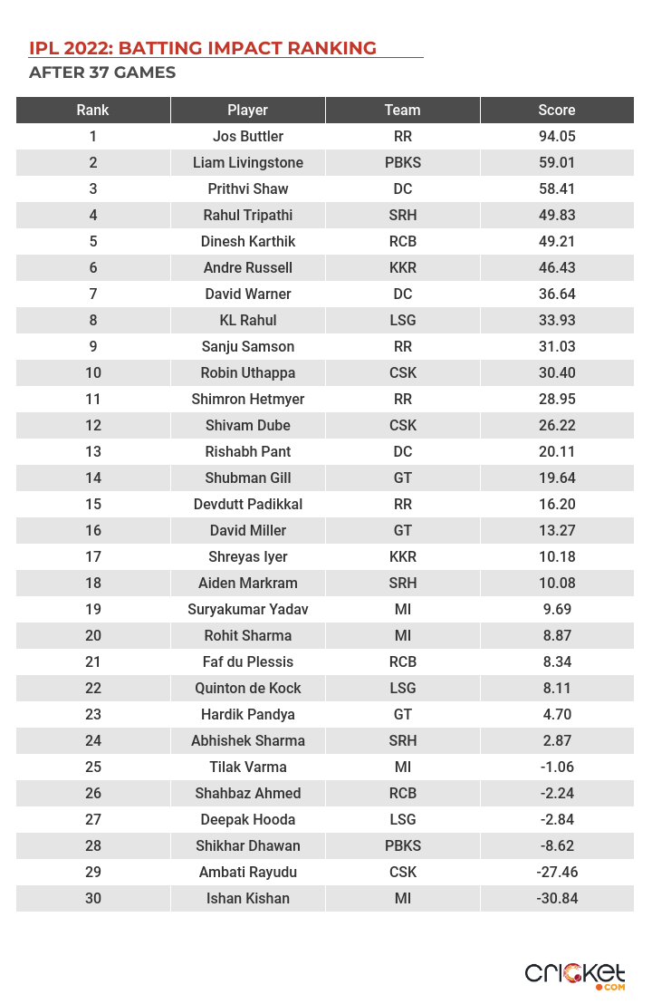 IPL 2022: Batting Impact Ranking