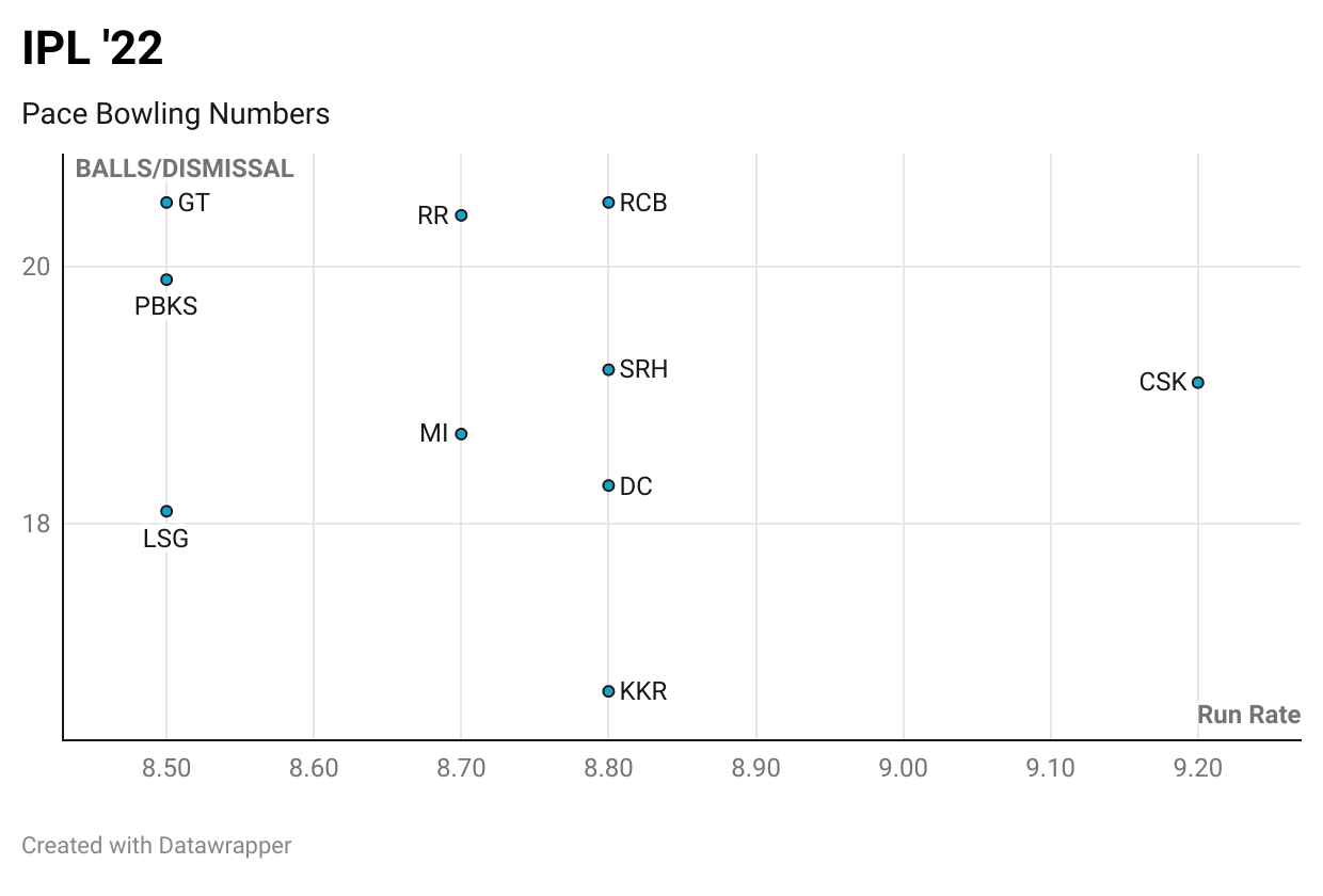 Delhi had moderate returns while facing spin and bowling pace. They have enough firepower in the pace bowling department, fuelled by the inclusion of Mukesh Kumar and Ishant Sharma. The only worry here: both are better suited to red-ball cricket. Such bowlers can be among wickets but are often expensive and Delhi’s pace unit struggled to contain runs in IPL 2022.