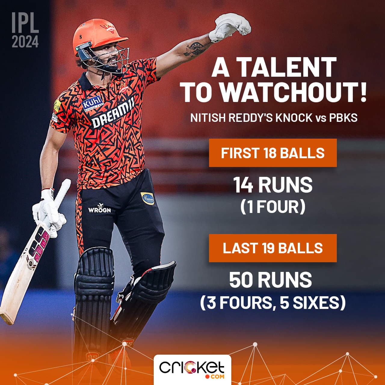 The right-hander took his time and was on 14 off 18 at one stage. Nitish then hit Harpreet Brar for a four and a six and never looked back thereafter. In his next 19 balls, he smashed 50 runs, studded with four fours and five maximums.