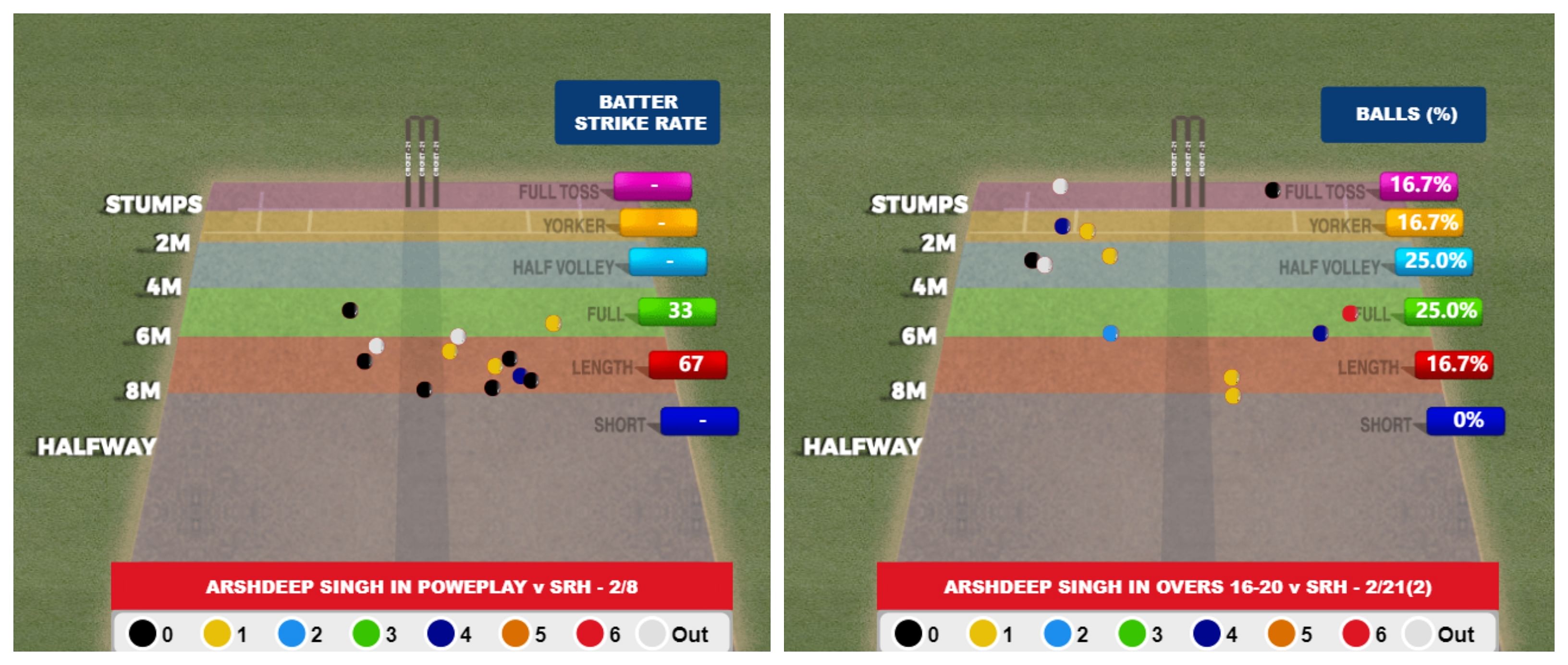 The latter two were hitting the ball well but Arshdeep got them by bowling those wide deliveries outside off. He eventually finished with figures of 4/29 - his third four-wicket haul in the IPL.