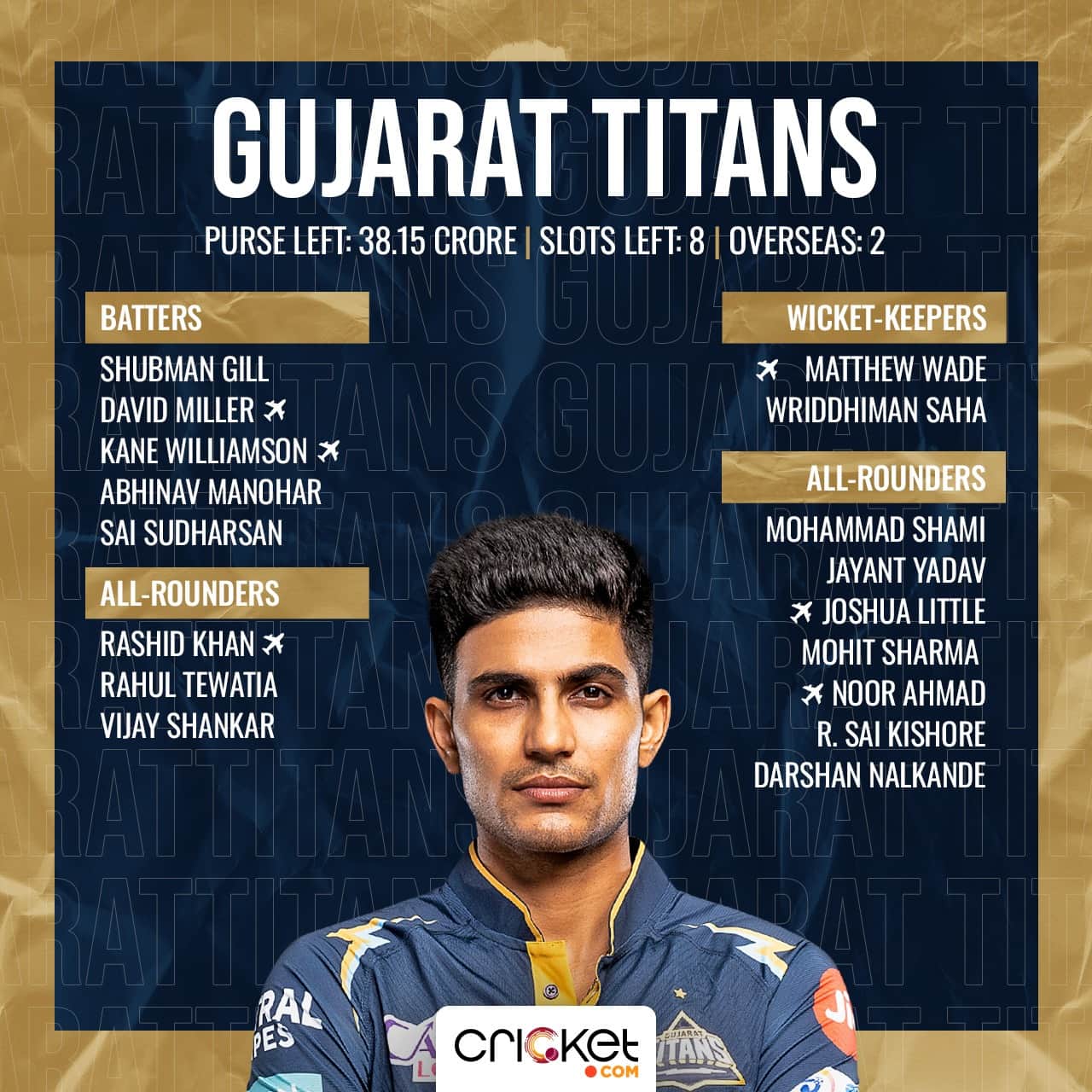 Vijay Shankar is left as the only batting all-rounder in the side and has bowled only 12.3 overs in the last three seasons of the IPL. Therefore, an all-rounder is indispensable for Gujarat. Their big purse helps them to outbid any other team for at least one player.