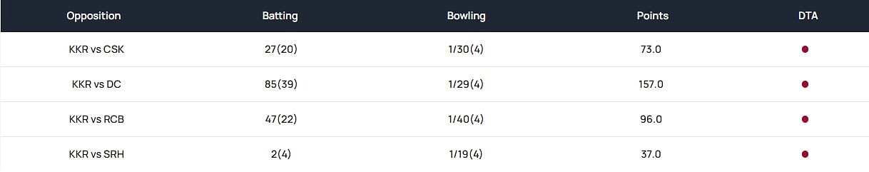 This is not a drill. Narine has indeed accumulated 230 points across Kolkata’s last two matches. And if you include the Bangalore match too, that’s 326 points in three games. Before the season began, there was apprehension amongst Fantasy Players to pick Narine because of his waning wicket-taking ability with the ball, but he’s turned a page with the bat and has transformed into the beast that he was six years ago. So far, Narine can’t stop scoring runs. And Fantasy points.