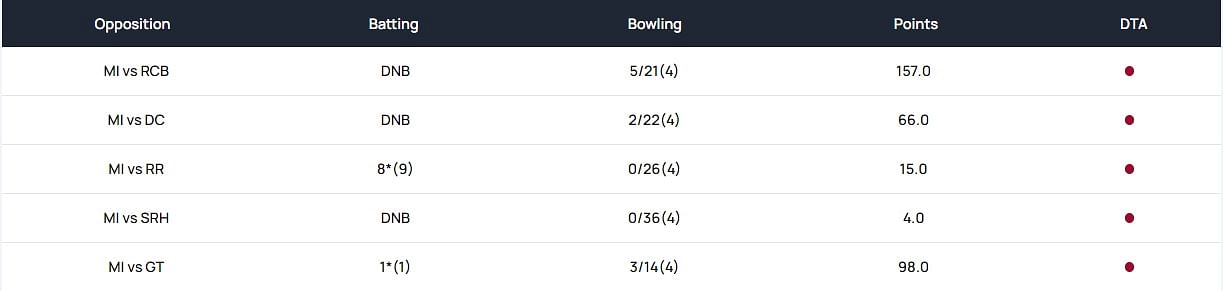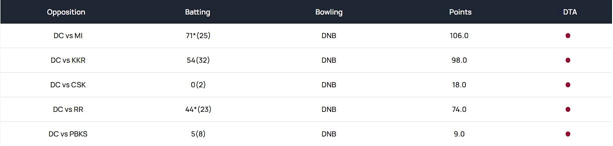 In his Indian T20 League career, Samson has never scored more runs in the first five games of the season than he has so far in 2024 (246). No wonder he’s dominating the Fantasy Points charts too. He’s picked up 109 and 97 points in Rajasthan’s last two games. He’s not just been accumulating points with the bat, but also behind the stumps. You know who to pick in your XI when Rajasthan play next.