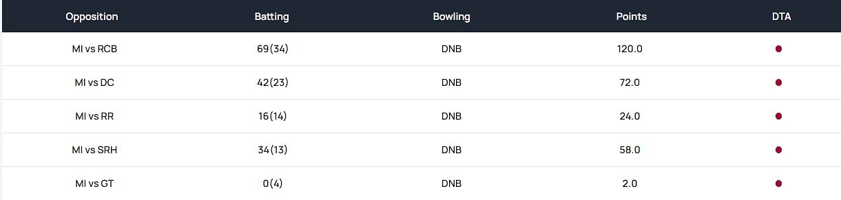 The second wicketkeeper in this list is Ishan Kishan. Again, like his best buddy Gill, he had a rough start to the season but he turned it around against Delhi, and is now looking unstoppable. Kishan batted only 34 balls against Bengaluru but still accumulated 120 points. Again, that’s the bonus of being a wicketkeeper. He grabbed two catches as well. With Mumbai’s next clash also being played at the Wankhede, it’d be a bit naive at this point not to have Kishan in your Fantasy XI.
